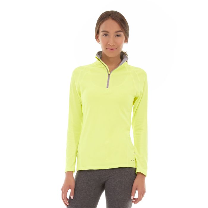 • Zippered front. • Zippered side pockets. • Drawstring-adjustable waist and hood. • Machine wash/line dry. • Light blue 1/4 zip pullover.